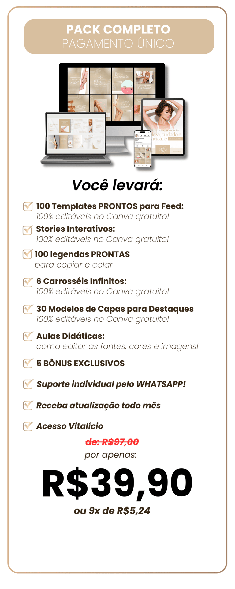 Com o Canva Pack Depilação, você vai ter posts para atrair e vender mais!